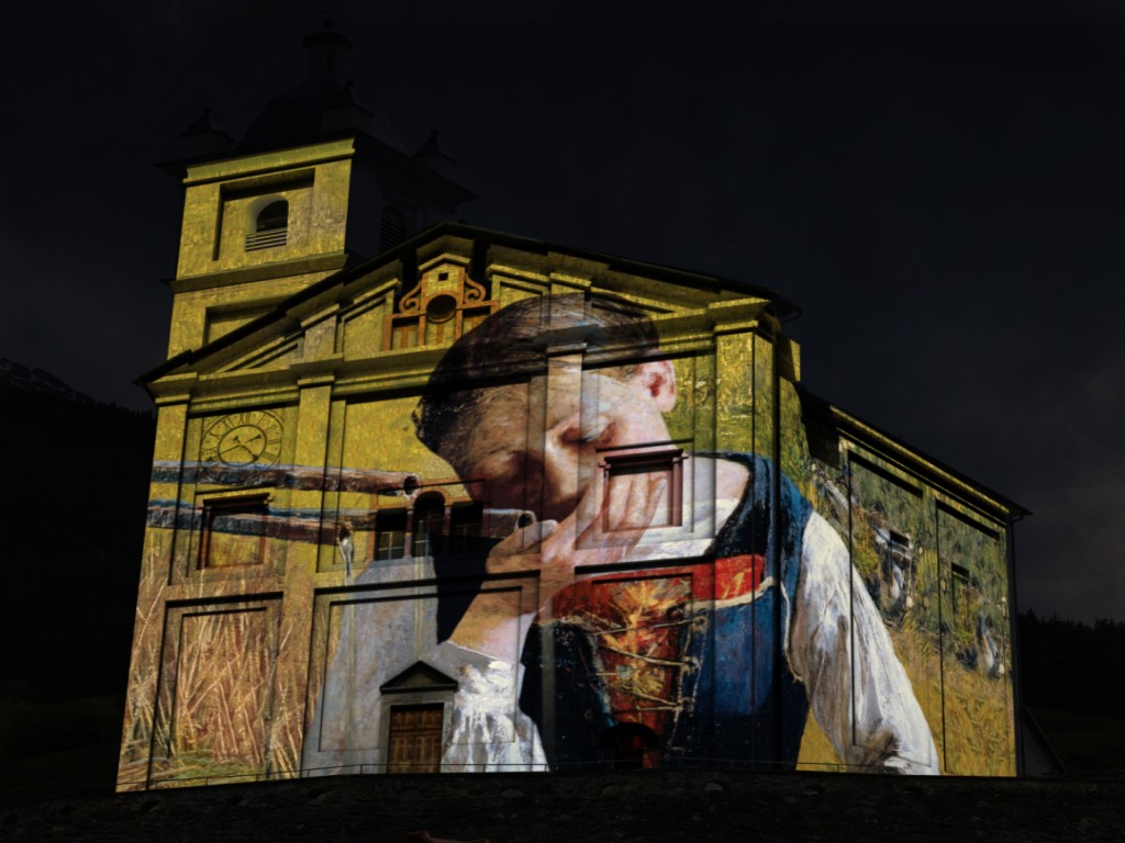 Spectacle multimédia ou vidéo-mapping musical "LUCE DEL PARADISO" réalisée par Mark Blezinger pour l'église de Son Martegn, Savognin, Parc Ela, Suisse à l'occasion de la "Festa Segantini" (17 au 18 septembre 2016) dédié au peintre Giovanni Segantini et la nature alpine produit par le Parc National Ela.