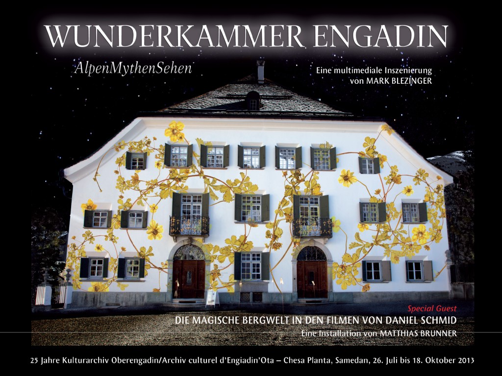 Exposition multimedia avec projection HERBARIUM ALPINUM sur la façade à l’occasion de l’anniversaire des 25 ans des Archives culturelles de l’Engadine avec le soutien de la Fondation Planta et de nombreux sponsors.