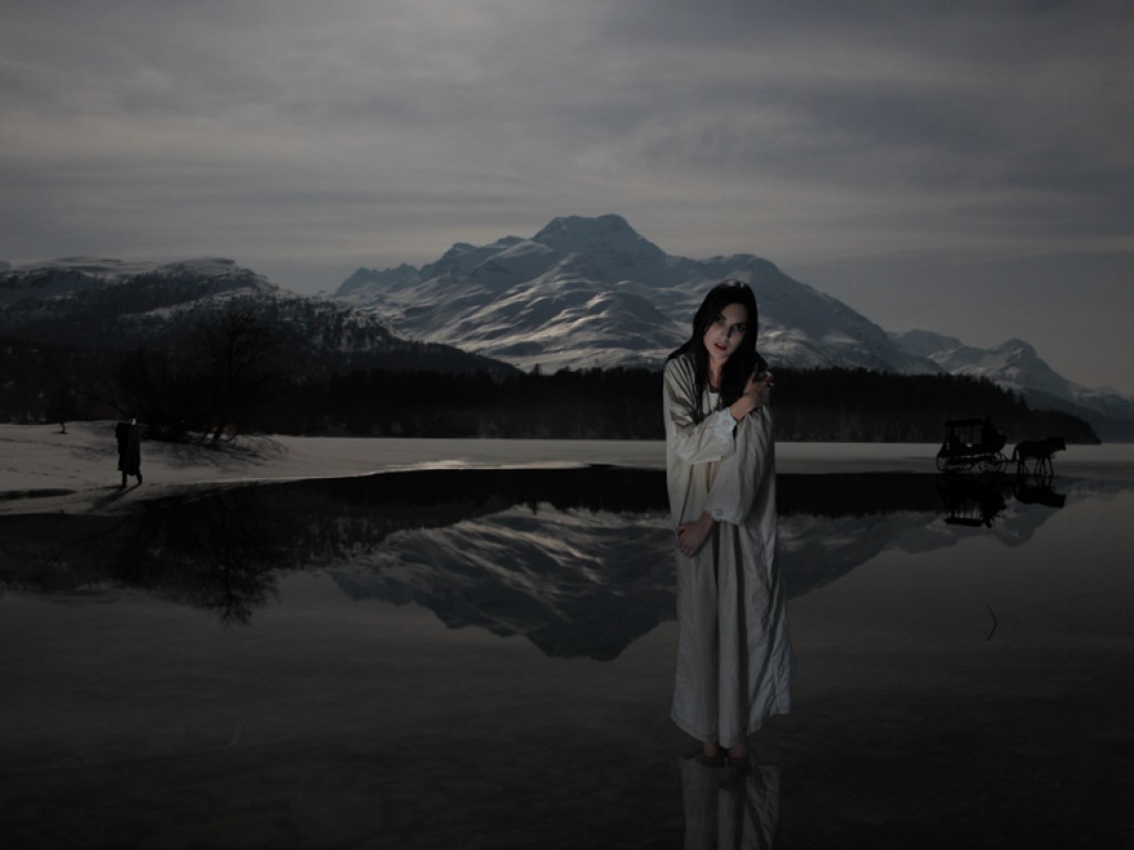 Nocturnal scenery at Mount Margna and the lake of Sils-Maria, Engadin