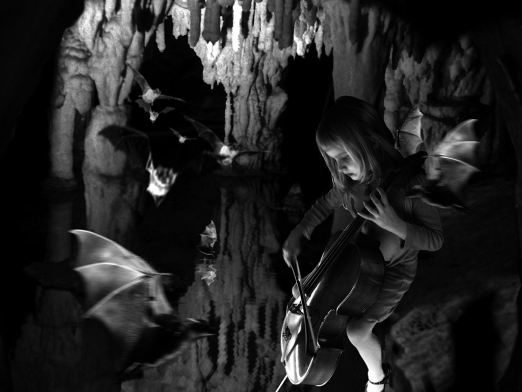 Arnold ratissait l'air de son aile en flânant. Une moisson de moucherons s'agglutinait au creux de cette membrane, toute fripée lorsqu'elle n’est pas déployée, mais hyper irriguée de millions de vaisseaux sanguins. Il sentait leurs petites ailes à eux chatouiller la sienne de froufrous apeurés, et hop, n'y tenant plus, au bord du fou rire car depuis sa tendre enfance il était chatouilleux, il fit de son aile une cuillère et les engloutit d'un seul coup et en une seule bouchée. Les moucherons frétillaient encore en glissant le long de son gosier. La nuit était aussi noire que de l'encre et sa vie aussi douce qu'elle pouvait l'être. Ici les femelles volaient les mamelles à l'air. Petits ou gros seins à cette altitude avaient une forme parfaite, jamais contrariée par la pesanteur. Souvent il lui arrivait de faire demi-tour en plein vol pour vérifier une courbe ou regarder de plus près ces dômes à peine poilus pointés vers le sol. Par une bizarrerie de la génétique, ses ultrasons à lui étaient réglés trop haut, à 101.1 Khz, et lorsqu'il quadrillait son territoire de chasse, souvent résonnait à ses oreilles la plainte assourdissante d'un air de violoncelle. Hortense Lyon, Paris 2008