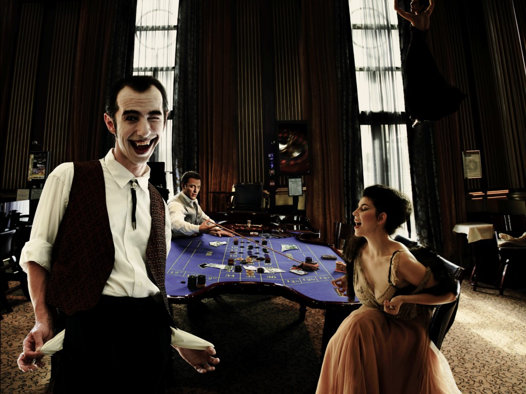 WINNERS AND LOSERS 2009 Format: 110x110cm. Impression Numérique Fine Art sur papier baryté collés sur plaque Dibond. Le DJ et compositeur Kid Loco, en maître de jeux au Casino d'Enghien.