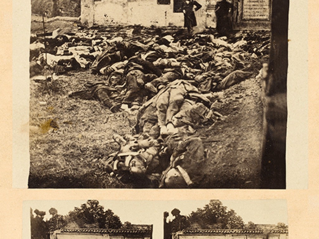 Réalisation d'une mise en relief pour le Musée de l'Armée à partir de la première photographie stéréoscopique de leur collection représentant une scène de guerre Cimetière de Melegnano, le lendemain de la bataille de Jules Couppier (18..-1860), juin 1859.