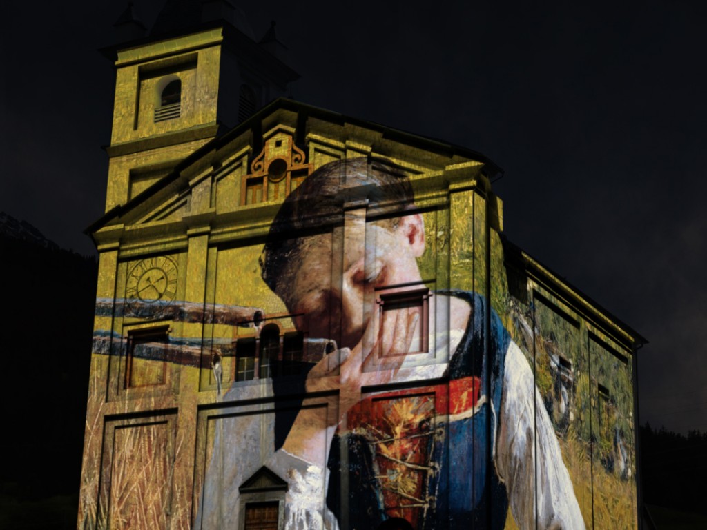Fassadenprojektion im Rahmen der Festa Segantini (17. - 18. September 2016) produziert vom Parc Ela.